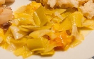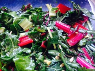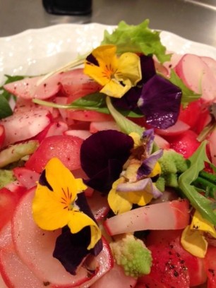 400g Romanesco zusammen mit 2 Bund Radiesli, 2 – 3 grob geschnittene Frühlingszwiebeln im Olivenöl anbraten. Salz und Pfeffer zum Würzen. Mit Wasser und Aceto Bianco ablöschen und bissfest kochen. Mit Veilchenblüten und anderen essbaren Blüten sowie Ruccula. Als lauwarmer Salat mit frischem Brot servieren.
