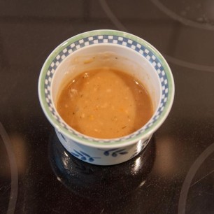 300g Schäufele gekocht, sehr fein schneiden, 80g Oliven, grün oder schwarz, 80g getrocknete Tomaten, 200g Frischkäse nature, 1dl Cognac oder Fernet Branca, 2 Päckchen Agar Agar- oder Gelantinepulver in Wasser aufgelöst, Meersalz und Pfeffer. Alles zusammen pürieren und die Masse in eine Terrineform giessen. Ein paar Rosmarinnadeln und roten Basilikum darüberstreuen und während mindestens 4 - 5 Stunden kaltstellen.