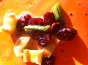 Senfsauce mit Rhabarber, Frühlingszwiebel und Cranberries