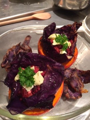 Chicorée Gratin mit roter Zwiebel und Haselnüssen