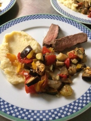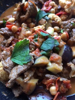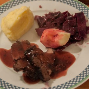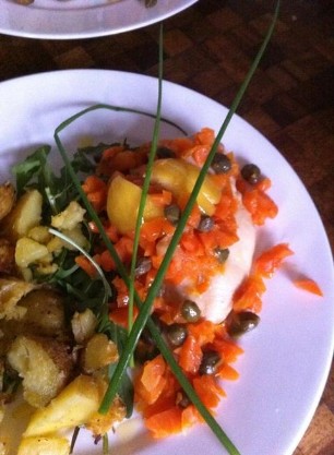 Confit: 1 rote Zwiebel und Knoblauchzehe, 4 - 6 grob gehackte Karotten, ½ Glas Kapern mit Jus, ½ bis 1 unbehandelte Zitrone mit Schale klein geschnitten. Alles zusammen in Olivenöl anbraten und mindestens 3 Stunden in hoher Pfanne leise köcheln. Mit Salz und Pfeffer abschmecken. Der Conift kommt erst beim Servieren übers Fleisch.