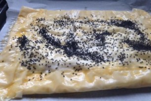 Teig: 250g gesalzene Butter, 500g Mehl, 1 ganzes Ei, ca. 100g Naturejoghurt. Alles gut zu einem kompakten Teig kneten.