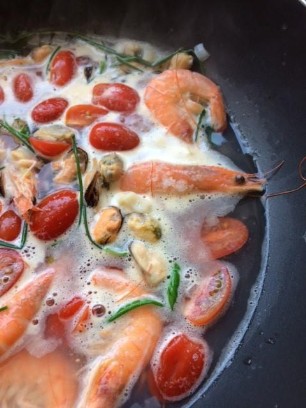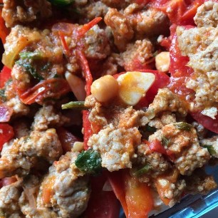 400g Trutenfleisch, klein schneiden. 2 Rhabarberstangen, zerkleinern, entkerntes Chilischötchen, 150g geviertelte braune Champignons, 1 grob gehackte rote Zwiebel und Knoblauchzehe. Mit Meersalz und Pfeffer und diverse Kräutern würzen. Alles zusammen anbraten und mit herbem Weisswein ablöschen. Aus 2dl Rahm und ein Löffel Crème Fraîche eine cremige Sauce köcheln. Vol au Vents backen 10 Minuten, 130 Grad Umluft und anschliessend mit der Sauce füllen und mit verschiedenen Sprossen servieren.